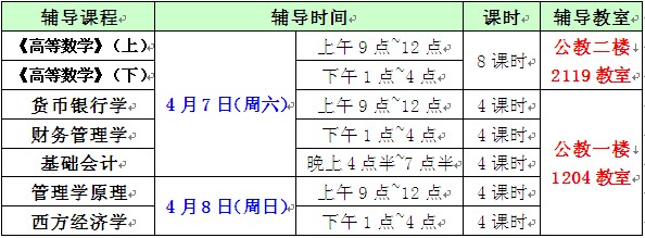 為了幫助同學(xué)們順利通過考試并取得更好成績,北京服務(wù)中心針對4月份課程考試將組織六門課程的免費考前面授輔導(dǎo)。經(jīng)過歷次考前輔導(dǎo)班成績情況分析,參加輔導(dǎo)的同學(xué)在課程考試通過率方面有大幅提高,請同學(xué)們踴躍報名。具體輔導(dǎo)安排詳見如下: