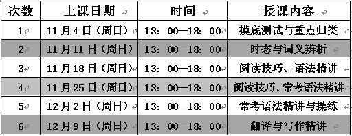2012年12月份統(tǒng)考英語面授輔導班報名通知