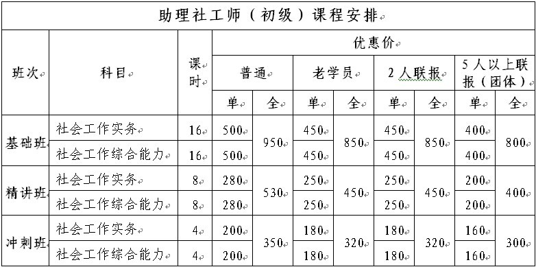 2. 平日、周末均可授課,依據(jù)社會(huì)工作者職業(yè)水平考試各科題量比例,有針對性的訓(xùn)練,側(cè)重突破考點(diǎn)。