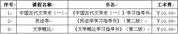 本學期三門課程有學習指導書:《中國古代文學史(一)》、《民法學》、《文學概論》。